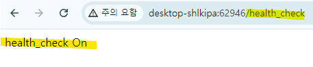 이 url로 들어가서 (포트번호 랜덤) -> /health_check를 입력해준다.